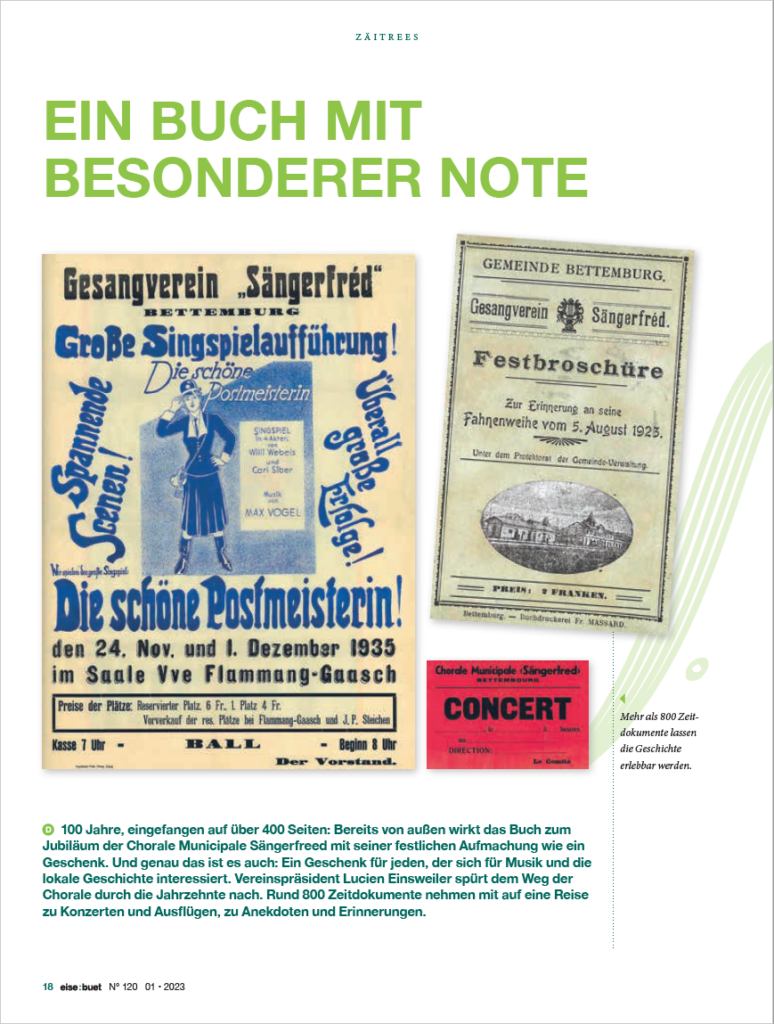DE KOMMITEE AN D’MEMBEREVUN DER CHORALE MUNICIPALESÄNGERFREED BETTEMBOURG traueren ëm d‘Martha Einsweiler-Even Giedel vun eisem Fändel Eieremember laangjäreg Sängerin Mir soen dem Martha, eng vun den éischten Dammen déi an eisem Veräi gesongen huet, ee grousse Merci fir hir Verdéngschter a fir hiren Asaz fir eis Chorale. Mir wäerten d’Martha ëmmer a beschter Erënnerung behalen. …